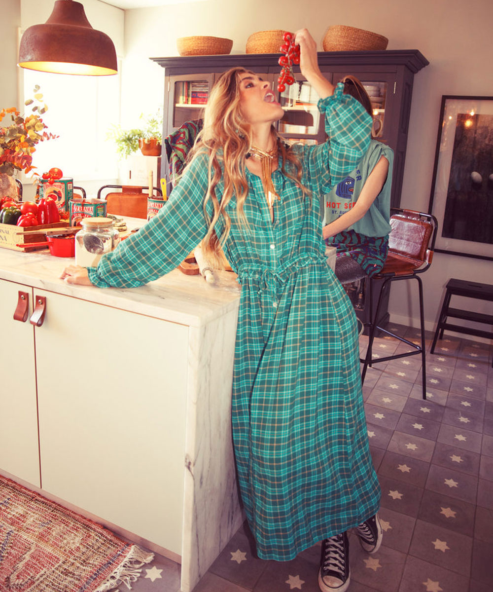 Vestido Cuadros Cuello Verde